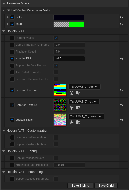 4. Enable all six parameters now appearing below Support Legacy Parameters and Instancing.